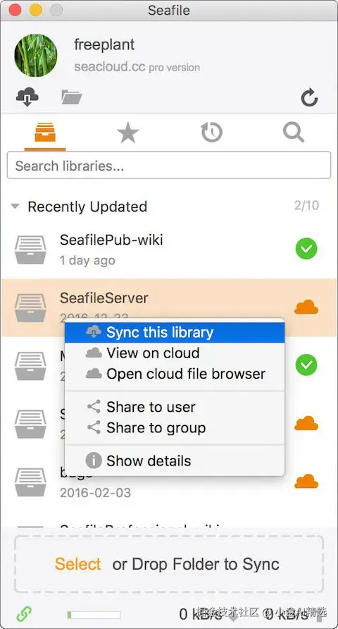 Seafile 以资料库形式组织文件,可同步到 Windows、Mac 和 Linux 等桌面电脑,用户也可选择性同步目录,未同步文件可通过 “云文件浏览器” 访问,且同步性能极佳,数万小文件可在 1 分钟内完成同步。