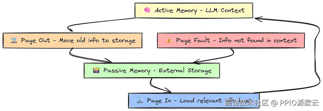 系统随即前往被动存储,找到相关信息,再把它加载回活跃上下文供大模型使用,这个过程称为“分页”。