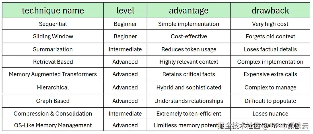 这九种不同的记忆优化策略,从简单到高度复杂。没有单一的“最佳”策略,正确的选择是在代理的需求、预算和工程资源之间取得平衡。