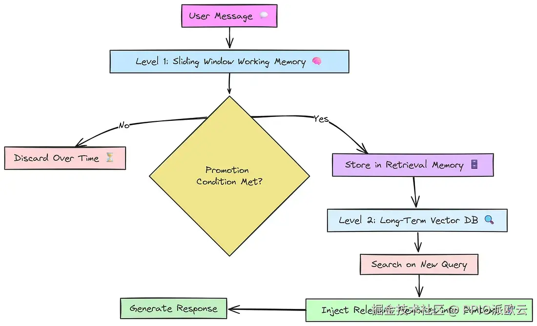 由于需要额外的 LLM 来提取事实,这是一种更复杂、更昂贵的策略,但它能够在长时间、不断变化的对话中保留关键信息,这使得它在构建真正可靠和智能的个人助理方面非常强大。
