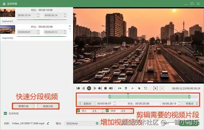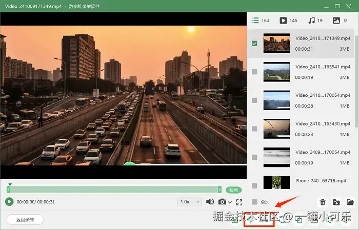 步骤3:录制完成后,可以在视频的预览页的右下角选择 “高级剪辑” 工具,对视频进行后期编辑操作,如快速分段视频、剪辑需要的视频片段等。