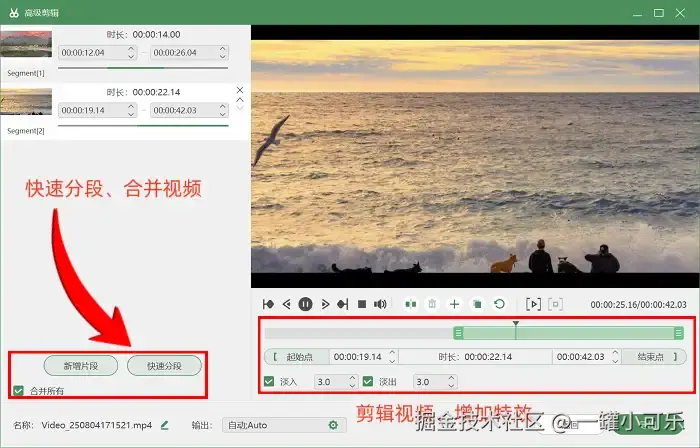 步骤3:录制结束后,软件会自动跳转到预览页面,在这里你能马上看到刚刚录制好的视频。要是觉得视频还需要再加工一下,比如说想快速给视频分段,或者添加一些转场特效让视频更出彩,直接点击 “高级剪辑” 按钮,就能对视频进行各种操作了。