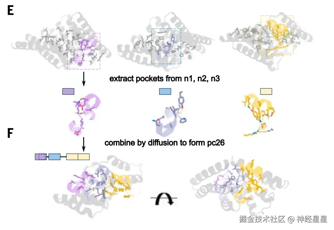 在蛋白质活性口袋特异化步骤,研究人员利用扩散模型对口袋进行微调,以实现与特定目标肽序列更精确的匹配。