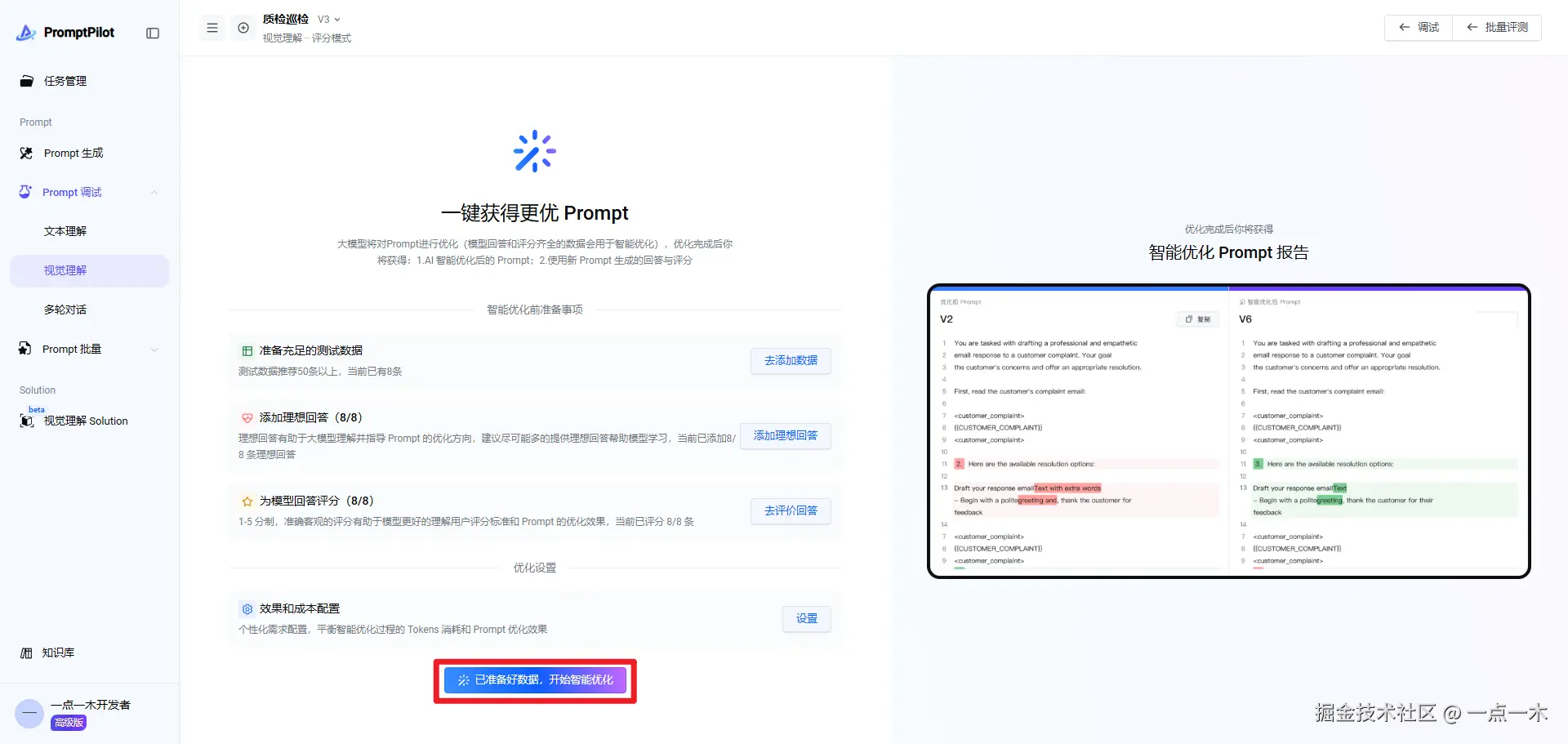 - 批量优化模块:支持已有批量数据集的用户,直接进入提示词批量优化流程,适合大规模业务场景。