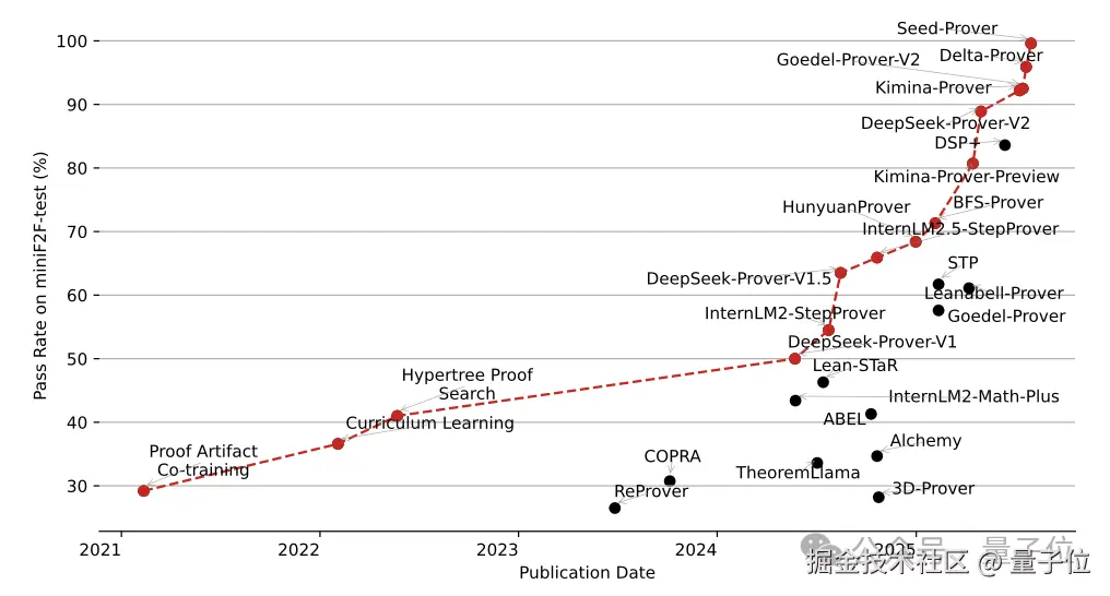 该模型全面超越了谷歌的 AlphaGeometry2,并在 MiniF2F 数据集上实现了惊人的 100% 正确率。