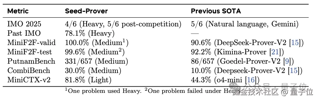 研究团队使用 Seed-Prover 与 Seed-Geometry 参加了 IMO 2025,完整解决了 6 道题中的 4 道以及一道题的部分证明,在比赛规定时间内达到了 IMO 银牌水准。