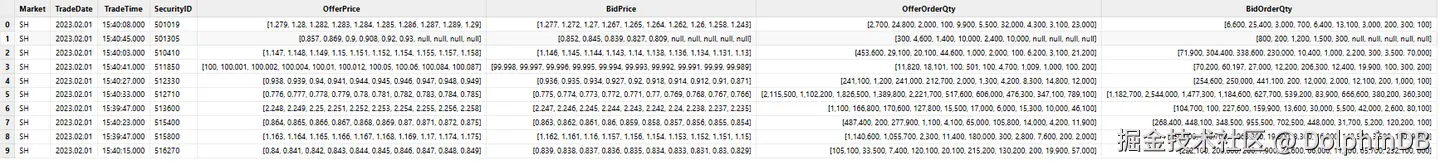 colNames = `Market`TradeDate`TradeTime`SecurityID`OfferPrice`BidPrice`OfferOrderQty`BidOrderQty