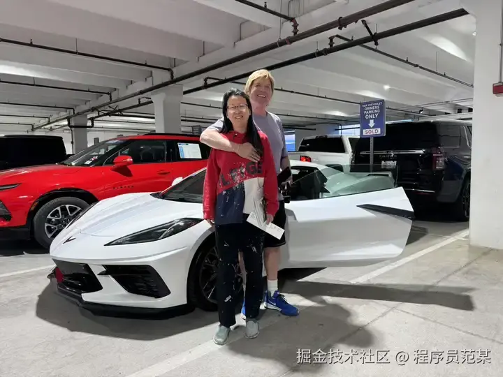 另外,在美国生活了几年后的一个感受是: 在美国可以生活得很随意,你可以穿得像油漆工去买车,左脚和右脚的袜子可以不一样,也没人会给你异样的眼光, 这是我和我老公去买这辆跑车时的照片,在上海如果你穿成这样,估计都没人接待你。