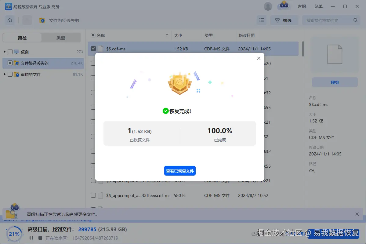 步骤4.等待文件保存完毕可直接查看已恢复的文件。(如果在操作过程中有不懂的地方,可点击上方“客服”寻求免费帮助)