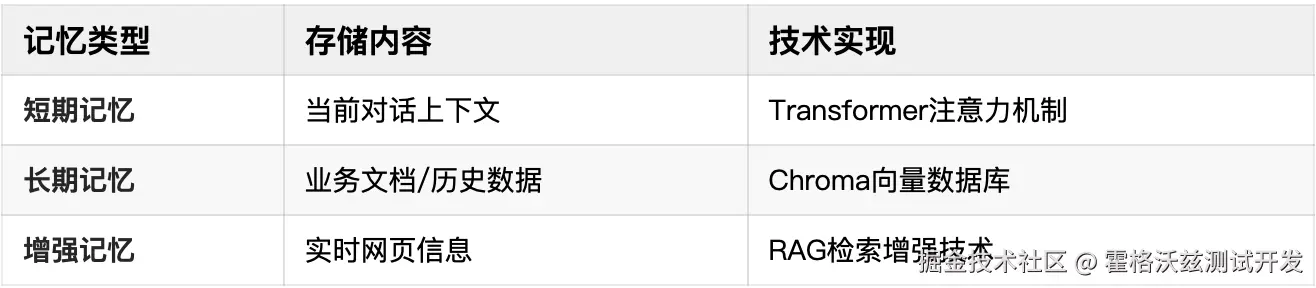 3. 记忆层(Memory):短期与长期记忆复合架构