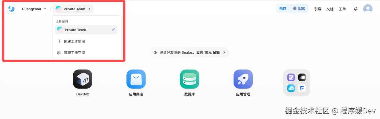 在 Sealos 里,这叫「工作空间 」: