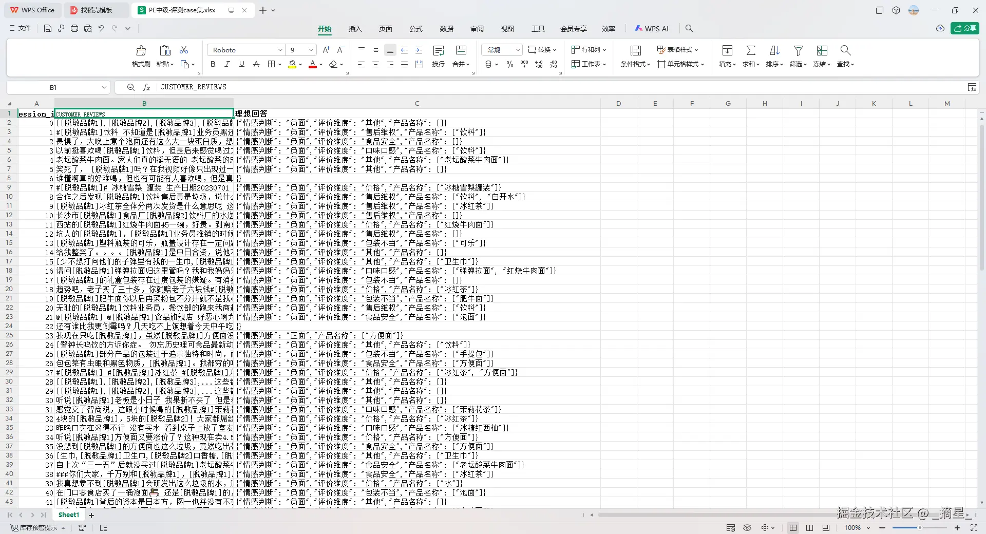 ```markdown 在互联网上,有很多客户发布的关于我们“脱敏品牌1”产品的内容和一些评价,有说我们这个面好吃的,有说这个饮料价格贵之类的,好的坏的都有,我们比较希望把这些内容能用大模型识别和格式化整理一下。首先要看一下,这些客户说的是正面评价还是负面评价;如果是负面的,就再分个类,看看是价格问题还是口味口感还是什么其他问题,然后看看对应的是哪个产品名,是牙膏还是饮料还是什么其他产品,给出来产品名称。我目前想到的是以下问题分类: 包装不当:产品包装相关的评价; 价格:产品价格相关的评价; 口味口感:食品类产品的口味、口感相关的内容; 食品安全:关于食品类产品卫生、安全性的内容; 售后维权:退换货等售后相关的内容; 其他:无法归类为前述标签的内容; 以JSON格式输出,字段是情感判断、评价维度、产品名称。 ```实践点: