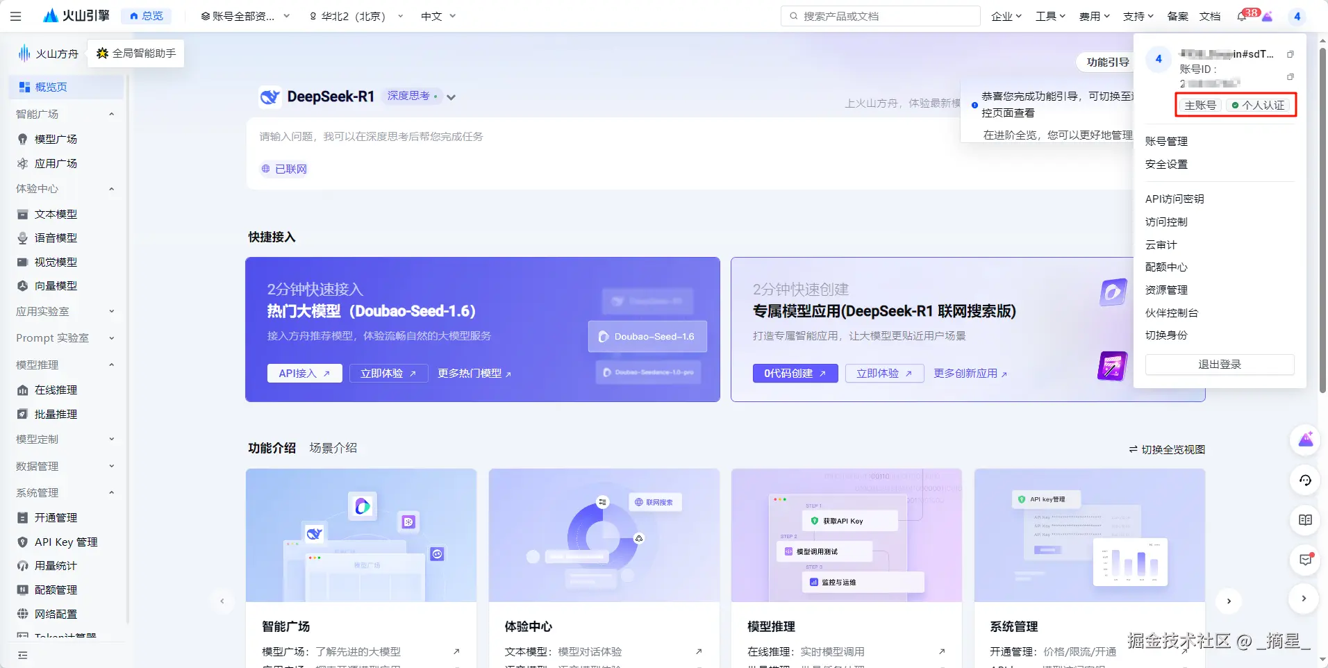 - 访问方舟控制台-API Key 管理创建 API Key,获取API key