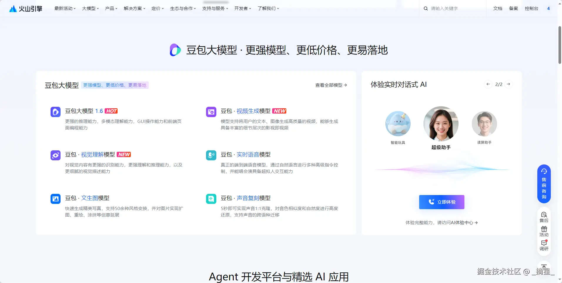 豆包(Doubao)是字节跳动推出的新一代大语言模型,基于云雀模型架构进行深度优化。作为火山引擎AI服务的核心组件,豆包模型在中文语言理解、多模态处理和推理能力方面表现出色。核心技术特点: