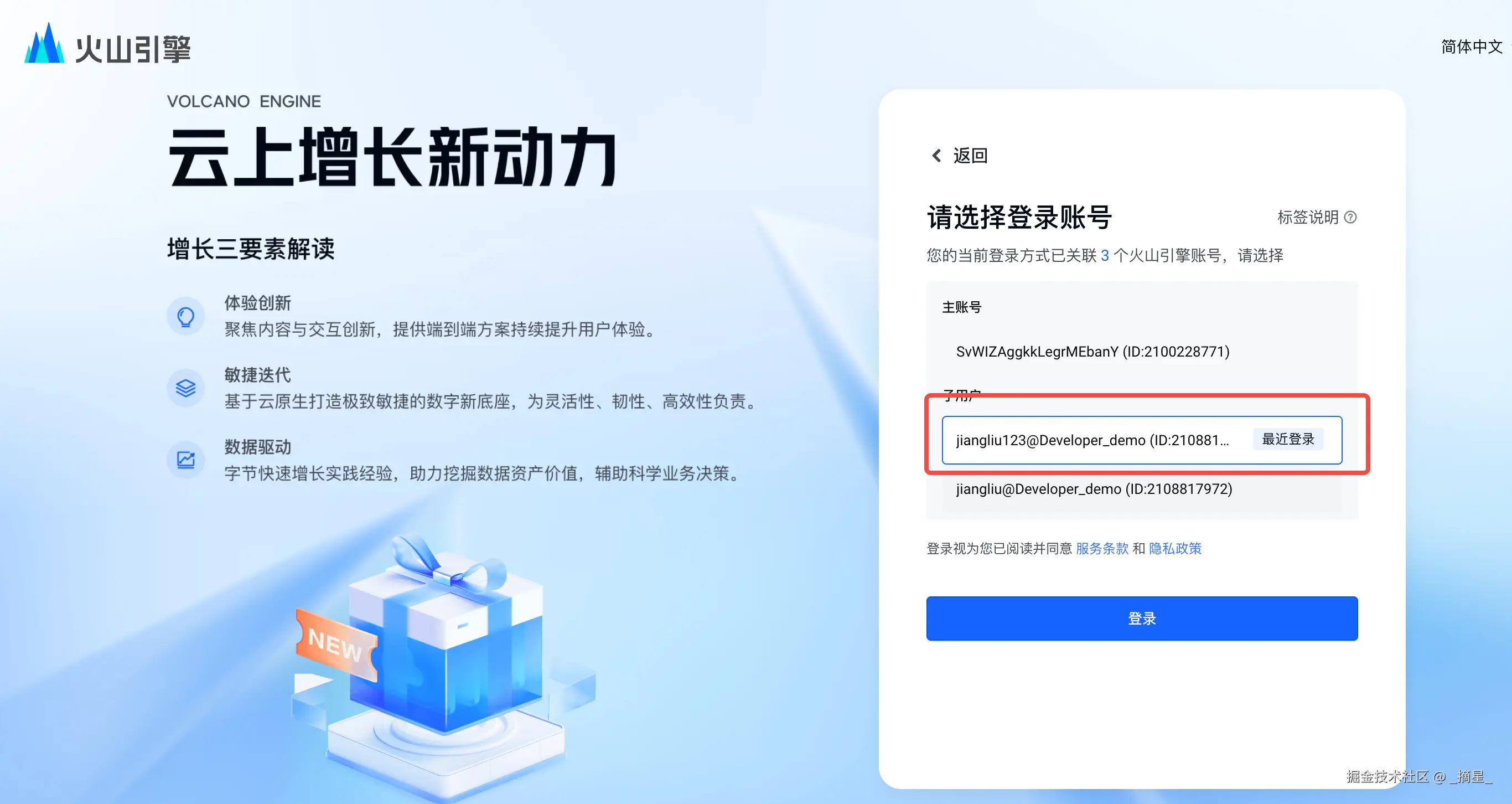 2. Step2:选择子账号登录(XXX@Developer_demo)