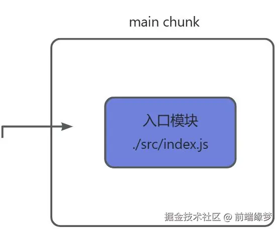 根据入口模块(默认为 ./src/index.js)创建一个 chunk,称为 main chunk。每一个 chunk 是有名字的,有很多个入口文件,chunk 会有很多个,默认情况下有一个 chunk。