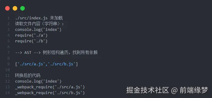 - 转换后代码:经过 webpack 处理的模块代码字符串
