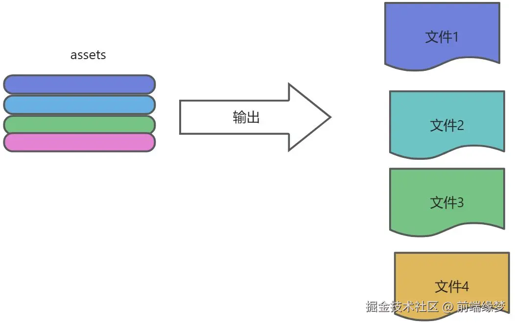 webpack 利用 node 中的 fs 模块(文件处理模块),根据编译产生的总的 assets,生成相应的文件。