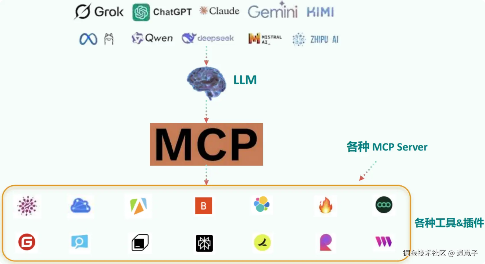 - 新的AI能力共享生态:通过MCP Server的共享,新的LLM应用可以快速获得各种工具,形成了一种新的合作体系,提高整体效用