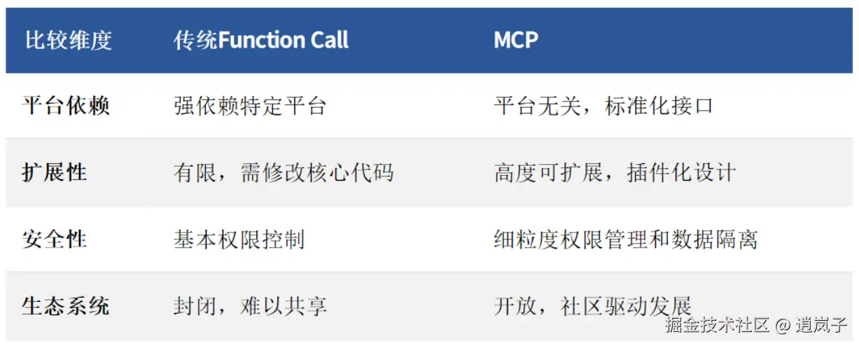 解决了传统Function Call的平台依赖问题,提供更统一、开放、安全、灵活的工具调用机制。
