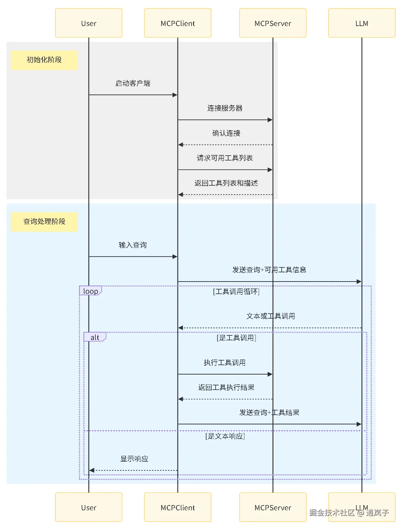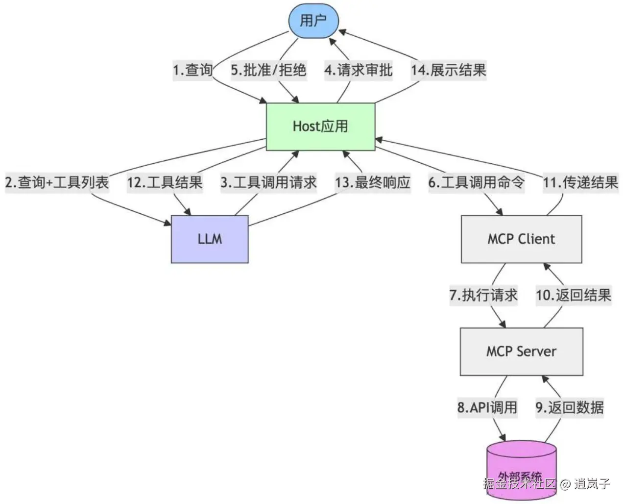 - 将 MCP server 的结果返回给 LLM