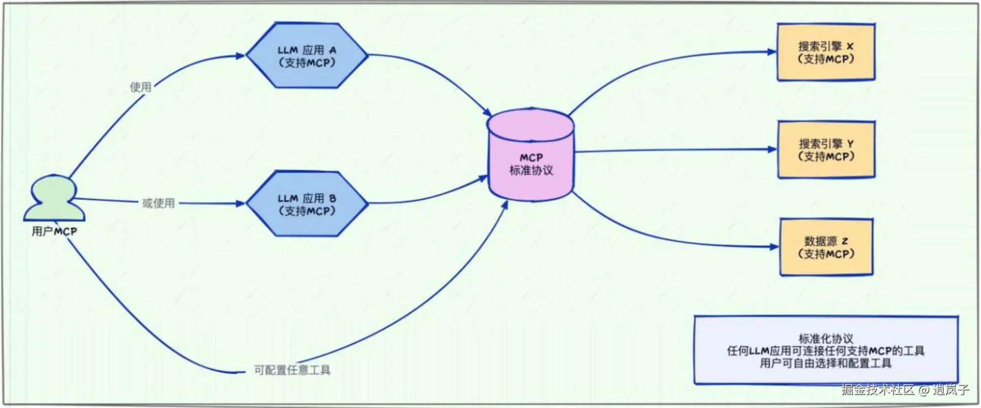 - LLM应用的快速扩展:随时“插拔”新的MCP Server即可,一个不够就再来一个