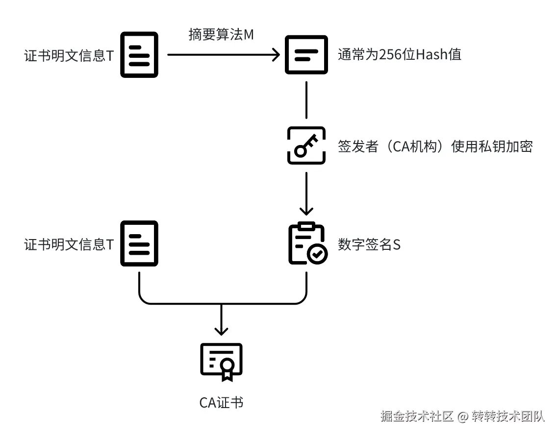 4.数字签名S和证书明文信息T组合起来,生成CA证书