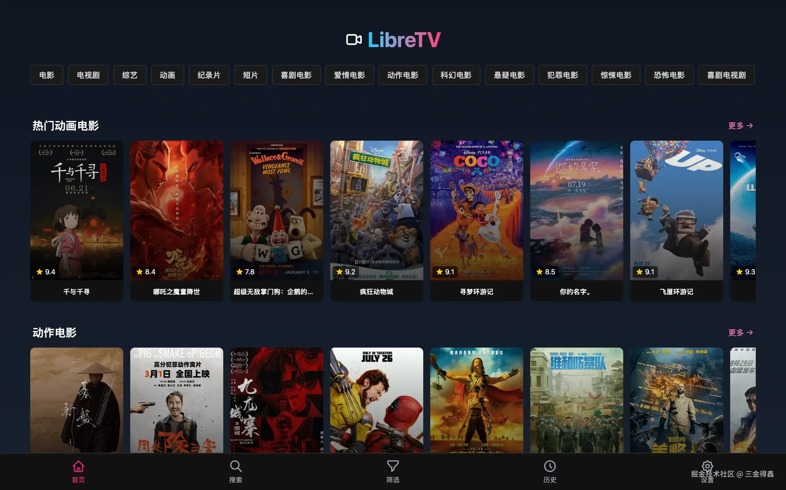以下是三金电脑和手机上的 LibreTV App 截图: