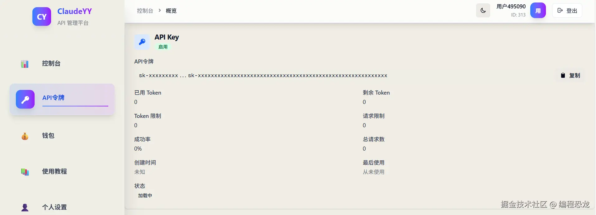 首先需要在ClaudeYY上获取API令牌