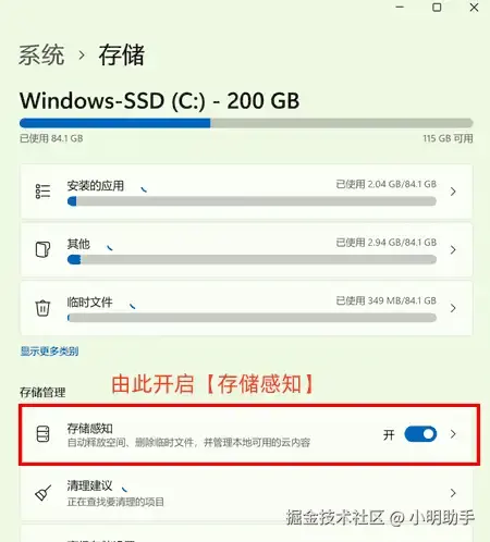 C盘清理教程4:开启存储感知功能