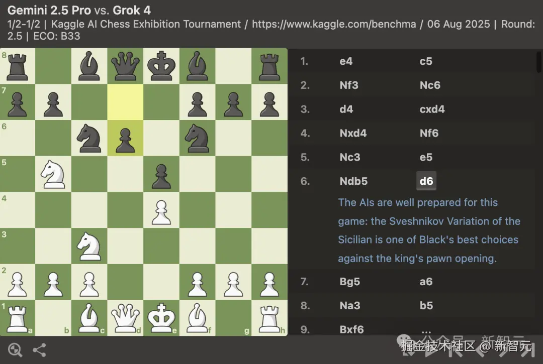 但 Grok 没能把握优势,在多一车的局势下未能完成绝杀,因三次重复局面被判和棋,比赛最终以平局告终。