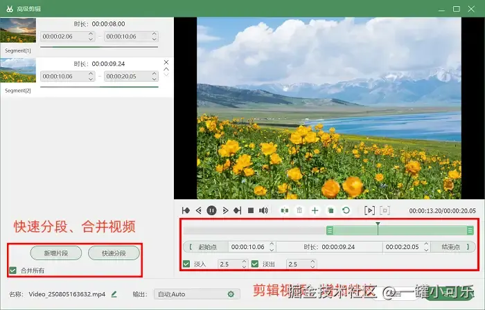 第3步:录完之后,不必马上点击保存,我们可以先打开 “高级剪辑” 工具对视频进行后期处理,比如快速分段、合并视频,或是删除不需要的片段。