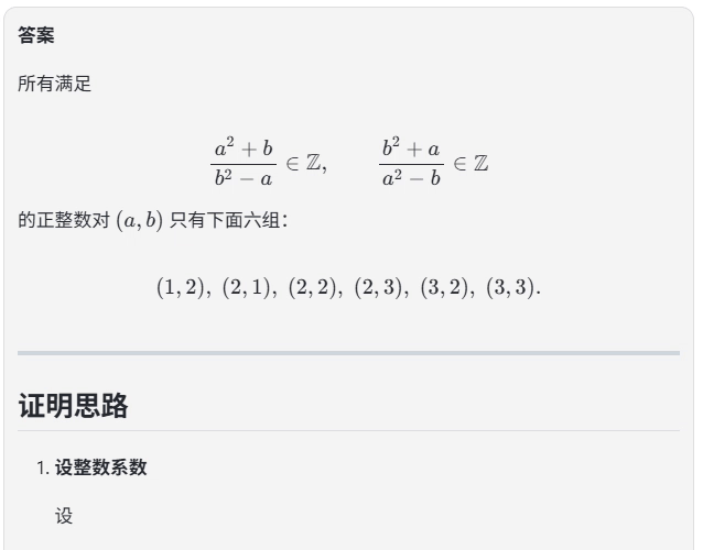求所有正整数对 (a, b),使得 (a² + b) / (b² - a) 和 (b² + a) / (a² - b) 均为整数。