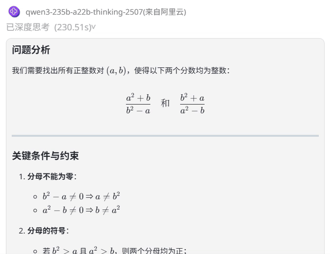 分析 :这个问题专门用于评估LLM在处理抽象数论问题时的“创造性思维”。它无法通过简单的模式匹配或“套路化”解题来完成,此题如果采用暴力搜索,解空间是无限的。模型必须采用逻辑推理的方式,而不是计算能力,来解决问题。