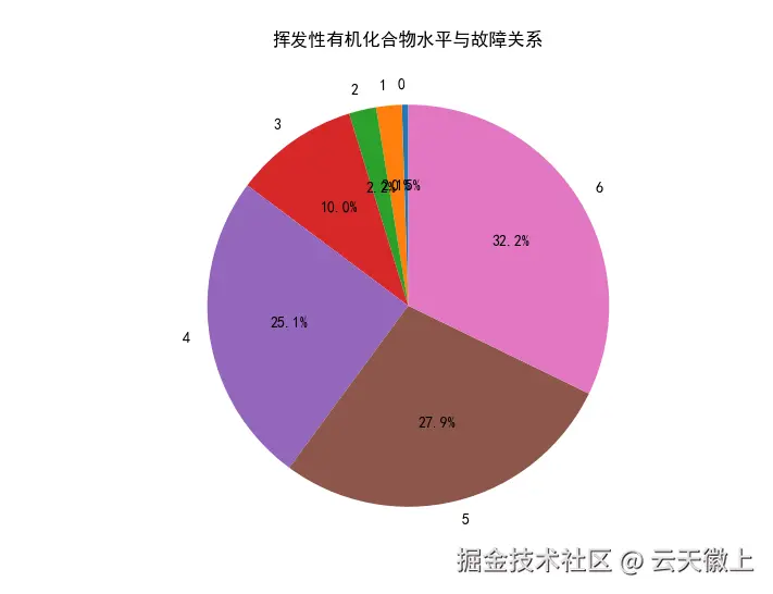 - 饼图:展示了挥发性有机化合物水平与故障之间的关系,可以直观地看出挥发性有机化合物水平对机器故障的影响。