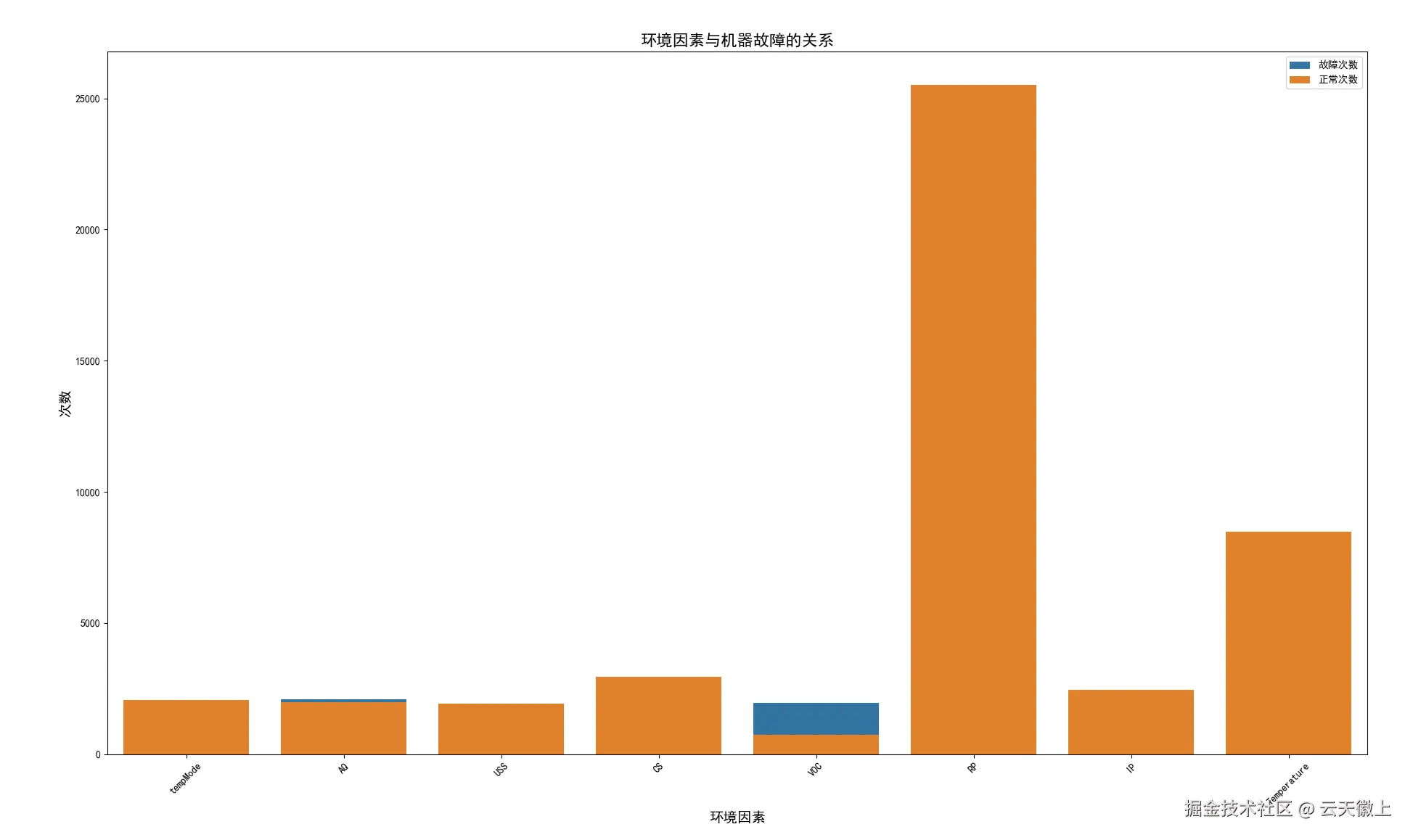 - 柱状图:展示了不同环境因素与机器故障之间的关系,可以直观地看出哪些因素与机器故障的关联性较强。