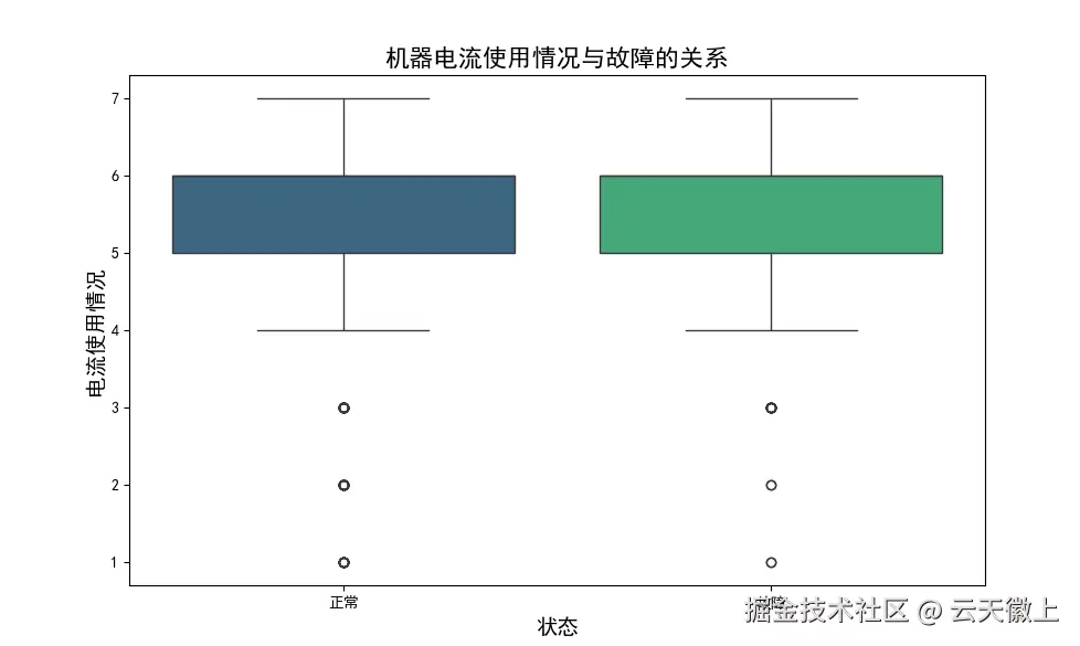 - 箱线图:展示了机器电流使用情况与故障之间的关系,可以直观地看出电流使用情况对机器故障的影响。