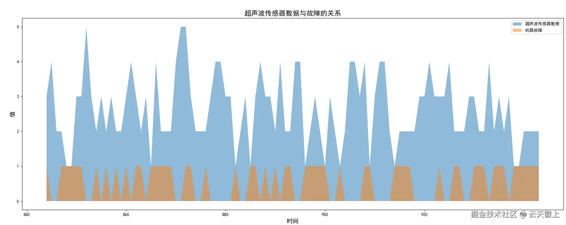 - 面积图:展示了超声波传感器数据与故障之间的关系,可以直观地看出超声波传感器数据对机器故障的影响。