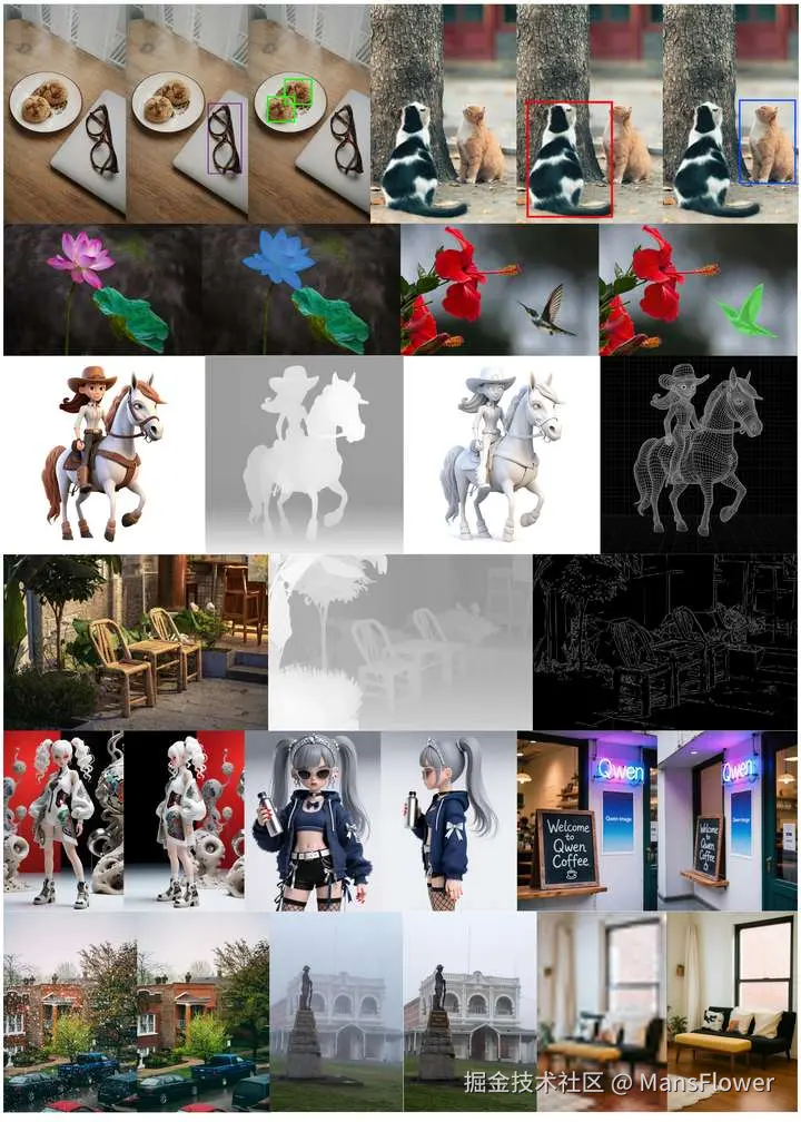 Qwen-Image不仅仅是创作和编辑图像,它还具备强大的图像“理解”能力。该模型支持一系列图像理解任务,包括目标检测、语义分割、深度和边缘(Canny)估计、新颖视图合成以及超分辨率。这些功能使其成为一个“综合性基础模型”,能够理解语言、布局和图像的融合,为智能视觉创作和操作提供了全面的工具。