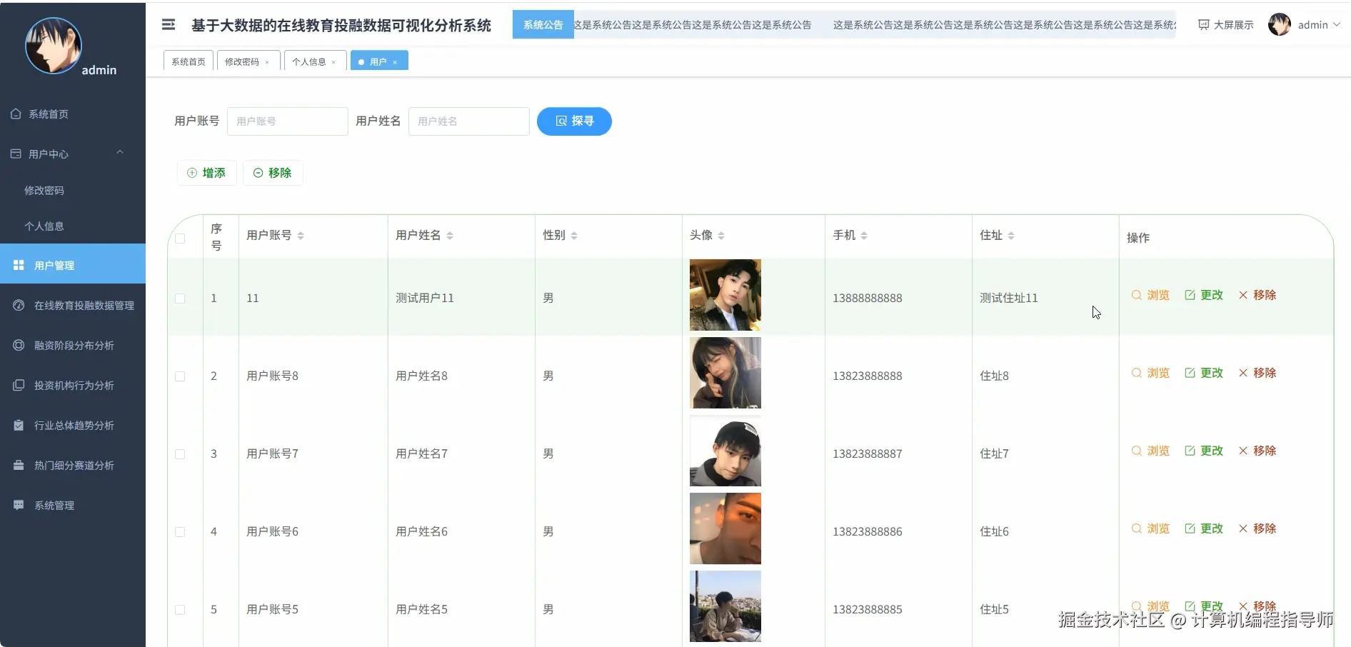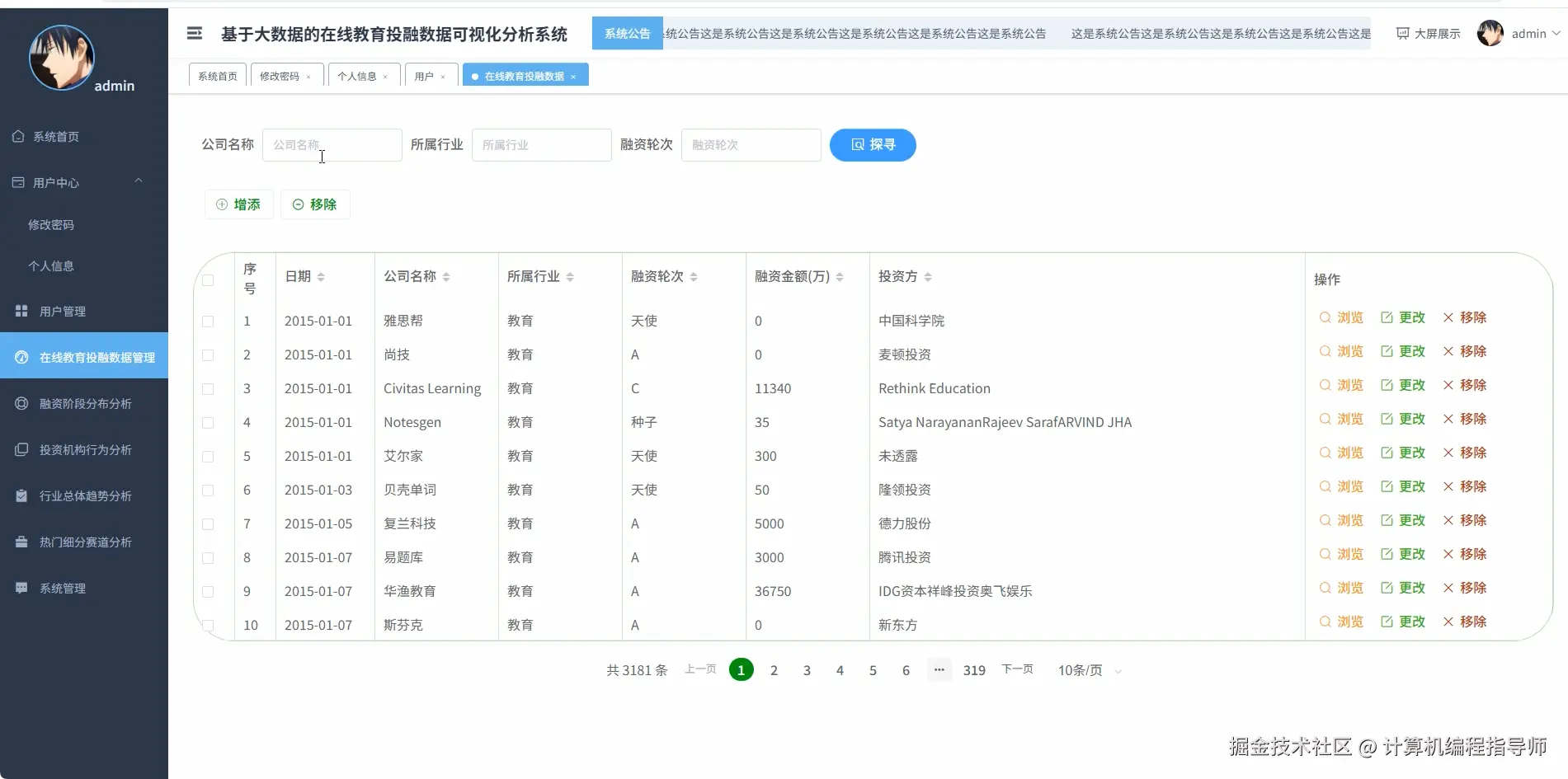 在线教育投融数据可视化分析系统-图片展示