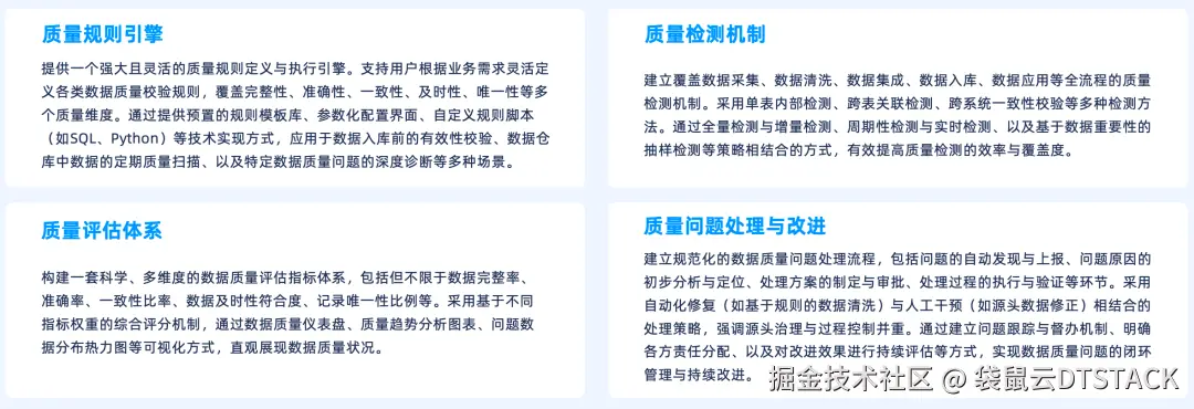 高质量的数据是发挥数据价值、支撑上层智能应用的前提。本方案将建立一个贯穿数据全生命周期的、闭环的、全面的数据质量管理体系: