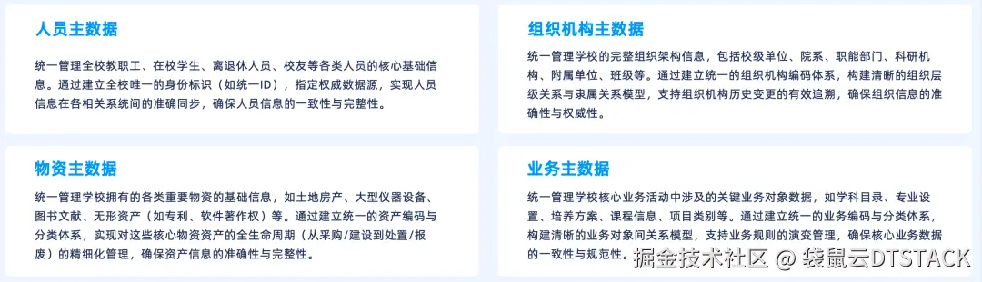 主数据是组织内跨部门、跨业务流程共享的、最核心、最基础的数据。本方案将建立覆盖学校关键业务领域的主数据管理体系与平台: