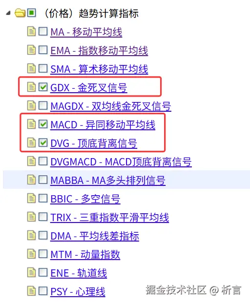 点击指标选用,勾选出 MACD 背离策略需要的三个指标: