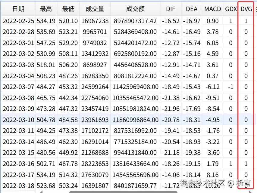 到这里,可以用统计图对比看一下 DIF,收盘价,DVG: