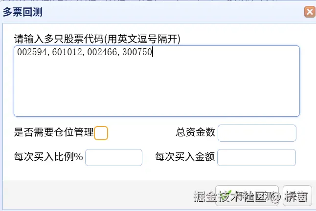 在弹出框中输入多只股票代码,用英文逗号分隔:
