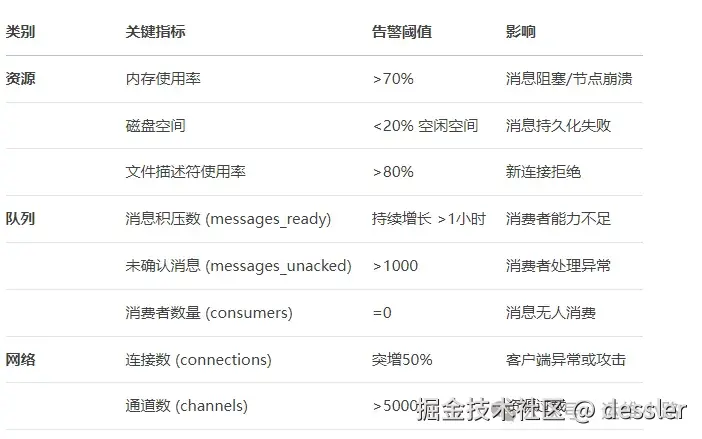 当然这些监控部署相对都会比较简单,监控以后是需要对核心指标进行告警,上面图片是让DeepSeek生成的告警指标,具体监控需求还是根据自己需求进行调整。