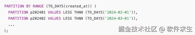 例如按照 created_at 每月一分区: