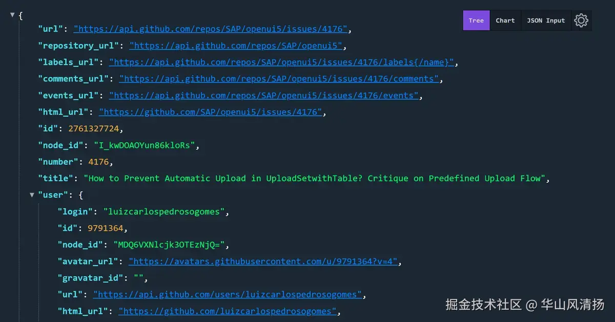 转换成对应的 Github API url 为:https://api.github.com/repos/SAP/openui5/issues/4176