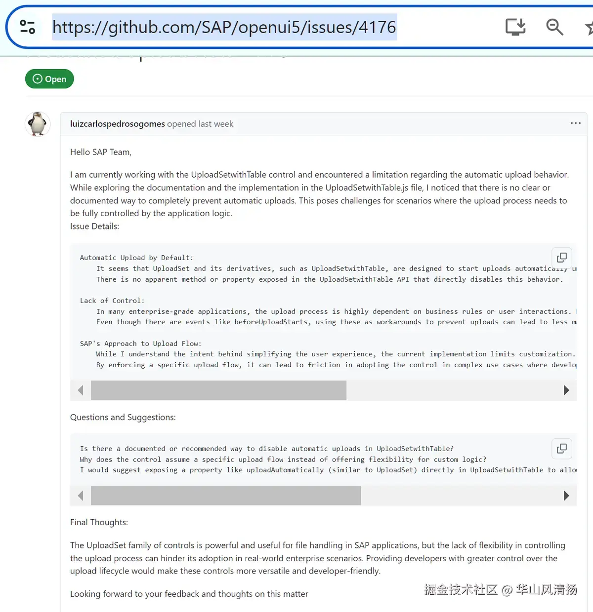 浏览器打开之后,issue 内容如下: