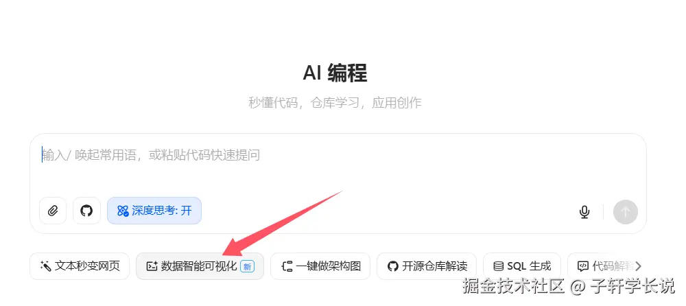 最近ai编程部分又更新了数据智能可视化和一键做架构图的功能。